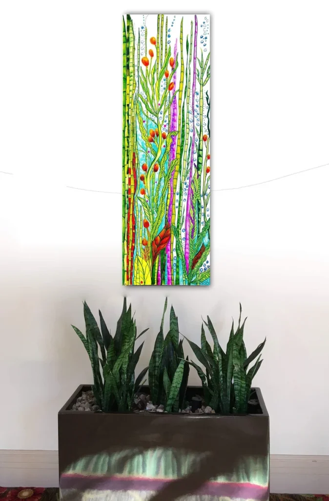 Kelp Garden Colorful Millennials and long art painting, under the sea, Deep ocean vegetation Gallery wrapped canvas print, water front home decor, Under the sea, Soulaya Designs, Fariba Farsad.
