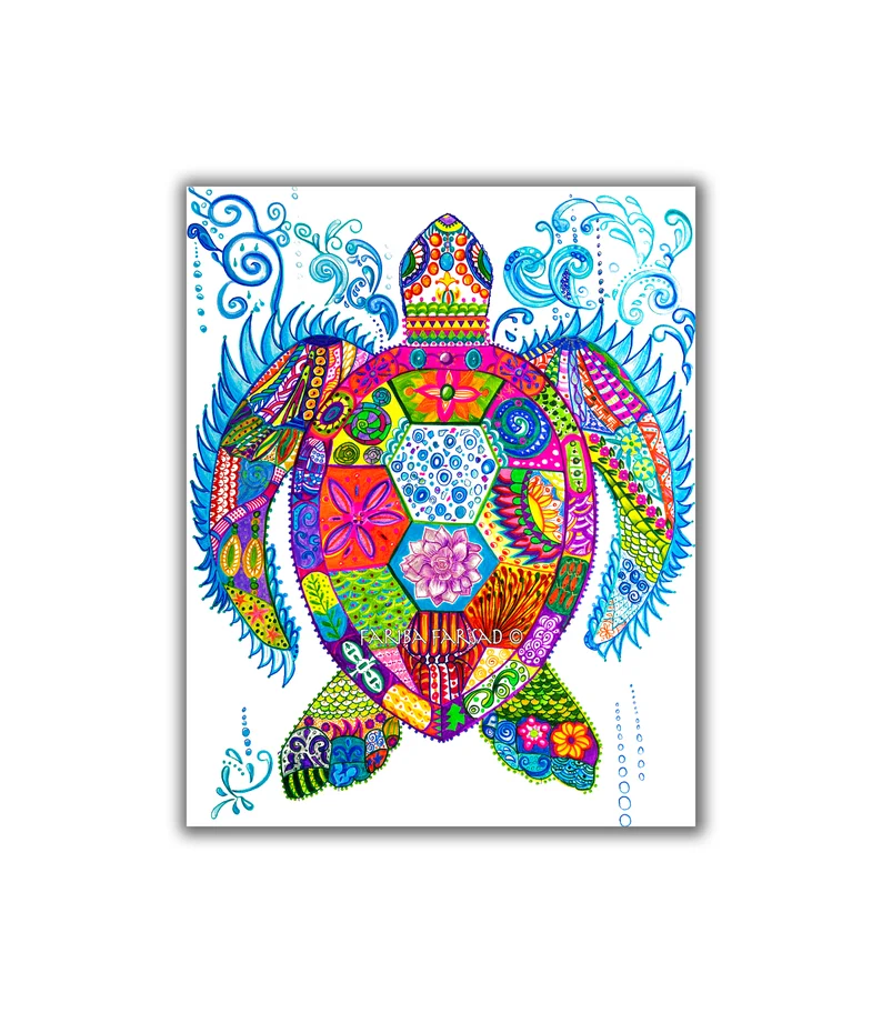Sea Turtle Spirit Animal Guide Abstract Art Painting Gallery Wrapped Canvas Print Colorful Wall Hanging, Bohemian Home Decor, Visionary Surreal Gypsy Psychedelic Mystic Shamanic Modern Contemporary Ocean Beach Tropical Coastal Simple Sea Art, Fariba Farsad