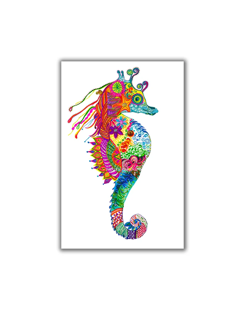 Seahorse Spirit Animal Guide Abstract Art Painting Gallery Wrapped Canvas Print Colorful WallHanging, Bohemian Home Decor, Visionary Surreal Gypsy Psychedelic Mystic Shamanic Modern Contemporary Ocean Beach Tropical Coastal Simple Sea Art, Fariba Farsad