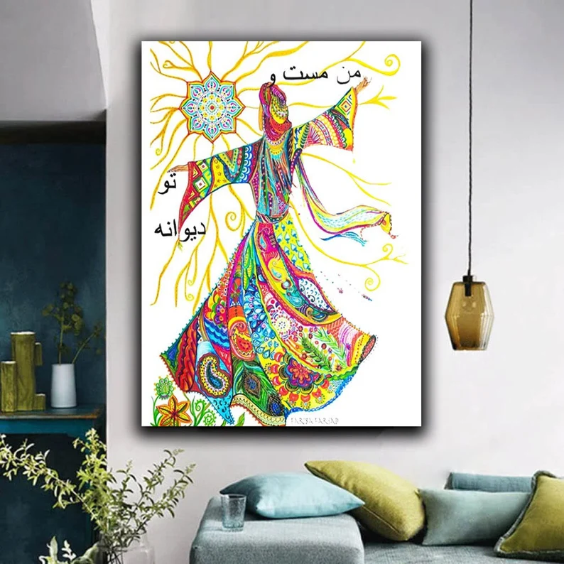 Whirling Dervish Dancer Persian Painting, Print Rolled Canvas Art